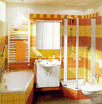 В глянцевых журналах ванная комната выглядит как роскошный салон. Сияние и блеск, каждая мелочь на своей полочке, из окна можно любоваться прекрасной природой и облаками, проплывающими по небу. Есть место тренажеру, солярию, кушетке для отдыха. А что мы имеем в типовом жилье? Совмещенный санузел площадью 3-5 кв. метра, который и комнатой-то не решишься назвать. Но если дизайнер берет на вооружение девиз "лучше меньше, да лучше", результат может оказаться впечатляющим.